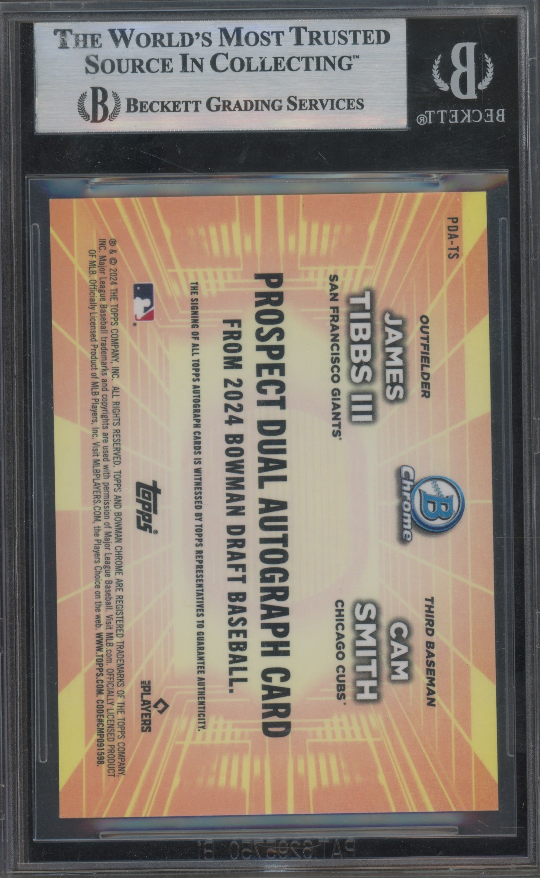 2024 Bowman Chrome Draft Autos Gold Cam Smith James Tibbs III #PDATS BGS Auto 9